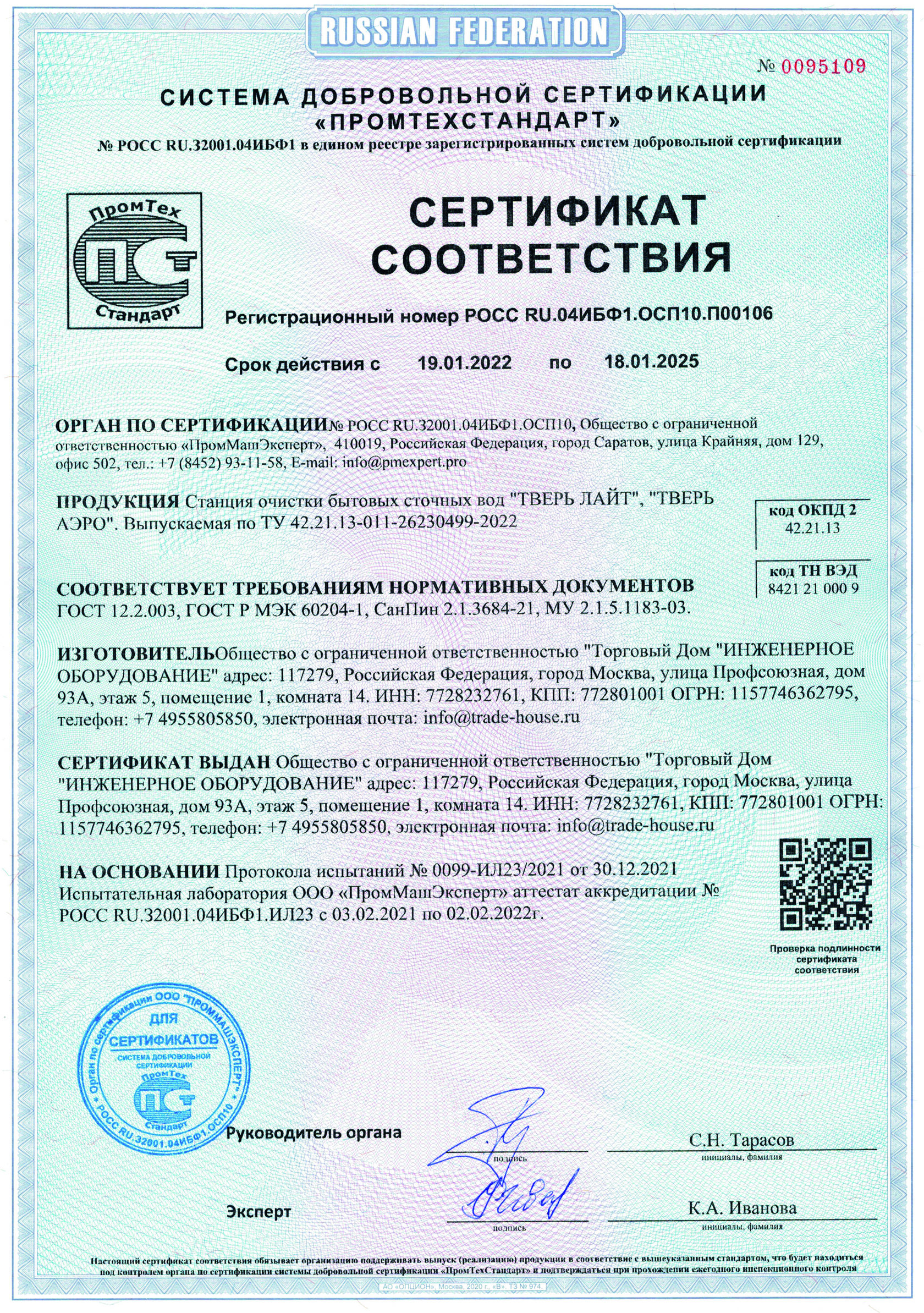 Тип подвода стоков и вывода очищенной воды — самотечный. Глубина лотка подводящего патрубка для установки составляет 0,32 от уровня земли. ТВЕРЬ CLASSIC 0,5П — универсальная модель, которая подходит для всех типов грунта, в том числе для почвы с высоким уровнем грунтовых вод. Септик имеет компактные размеры, но при этом гарантирует высокое качество очистки стоков, прост в монтаже и обслуживании. Гарантия отсутствия неприятных запахов позволяет устанавливать септик в любом месте вашего участка. Обслуживание на практике происходит 1 раз в 2−3 года при постоянном проживании, реже — при сезонном.