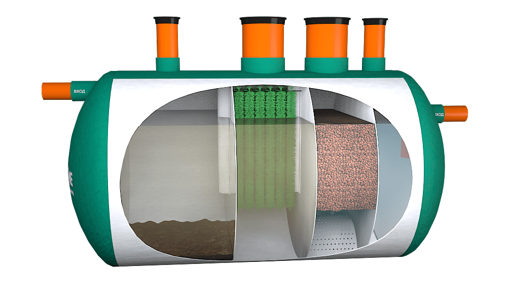 Cконструирован для северных регионов. Цельный корпус септика спроектирован для использования в сложных климатических условиях и болотистом грунте.